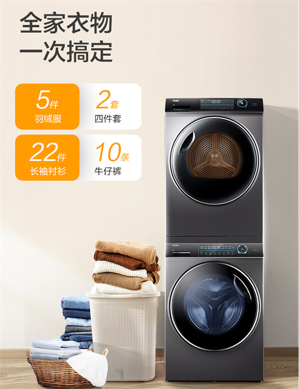 ️推荐理由:这款海尔洗烘套装洗衣和烘干容量均达到了10kg,也为变频一级能效。洗衣机尺寸:长595mm,宽507mm,高850mm。干衣机尺寸:长595mm,宽600mm,高850mm。它也是一件精美的百搭家居,精致的外观加高档轻奢的外观颜色,衬托出主人家的高档品味,它可以左右摆放也可以上下摆放,取放便利节省空间。