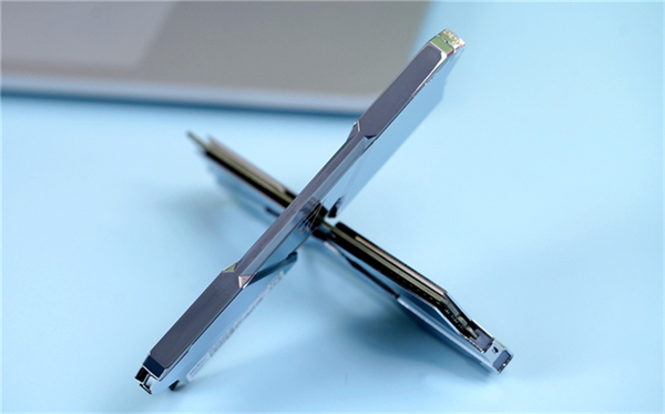 朗科绝影RGB DDR4采用对称式设计理念,散热马甲采用的是0.8mm 5052铝材,经冲压一体成型,最后再使用电镀银工艺进行处理,