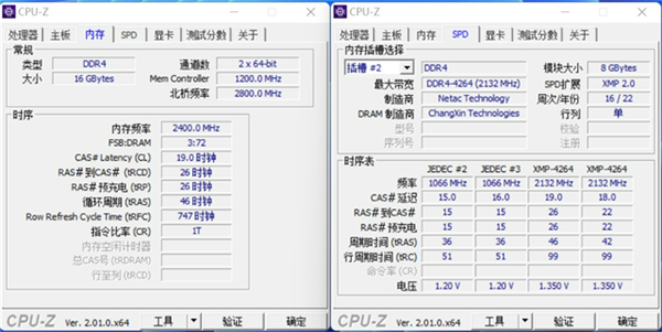 内置有2组XMP参数,分别是4266MHz 19-26-26-46和4266MHz 18-22-22-42,电压都是1.35V。