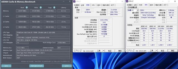 4266MHz 19-26-26-46下,写入复制带宽分别为61GB/s、61.5GB/s、57GB/s,延迟62.3ns。