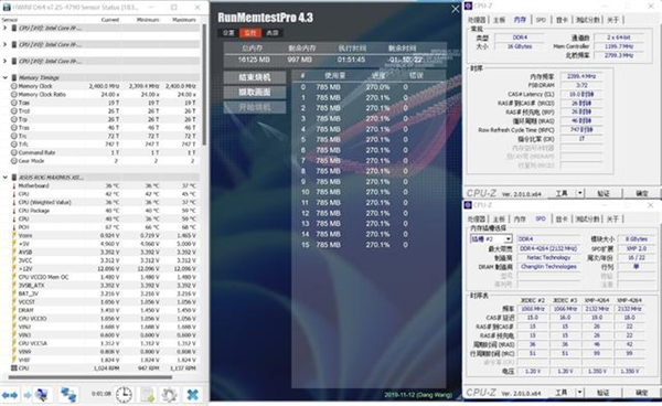 使用Memtest Pro 4.3测试超频后的稳定性,运行了近2个小时,进度达到了270%依然是0报错,证明了朗科绝影RGB DDR4-4266内存可以在1.45V的电压下能稳定在4800MHz C19频率下运行。