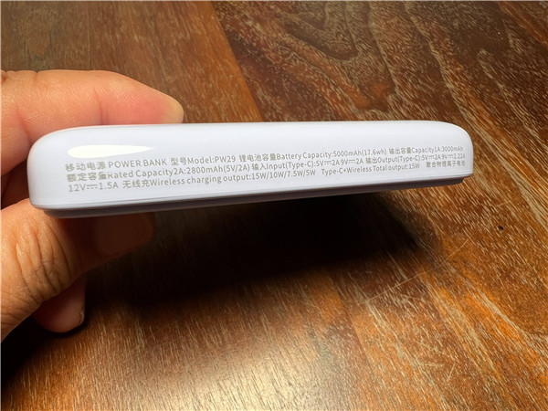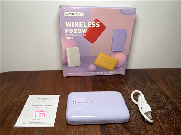 总结:沃品磁吸无线快充移动电源PW29容量为5000mAh,电量不算太大但体积小巧迷你,可以随身携带。