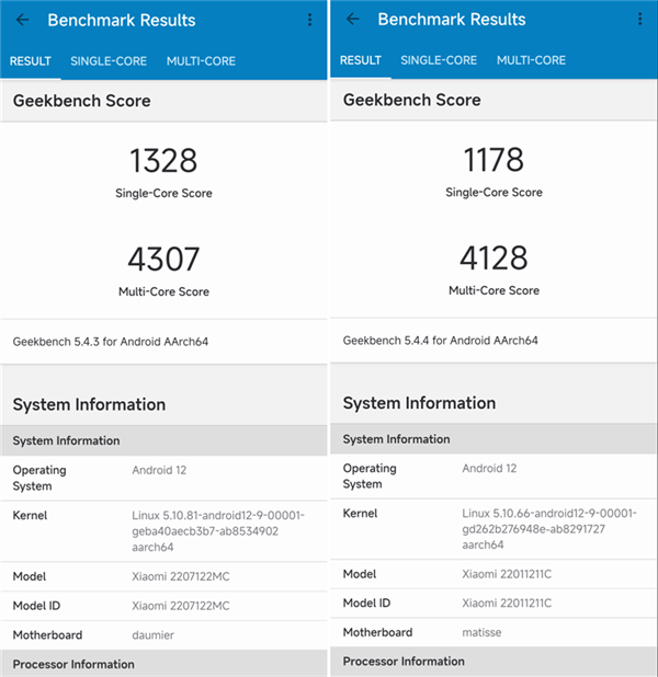 首先,我们就利用理论性能测试工具,来看看性能实际的提升到底有多少。考虑到不同厂商手机调度策略的不同,我们挑选了Redmi K50 Pro作为对比对象。