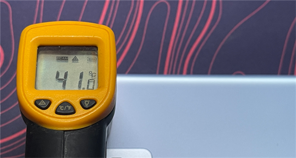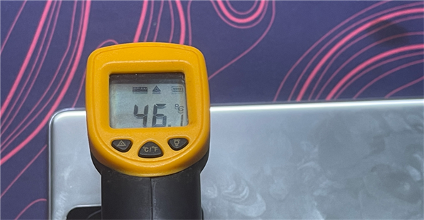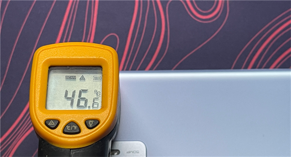 测试结束,机身后部的温度同样可观,均达到了46℃,有着0.5℃的差距。