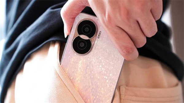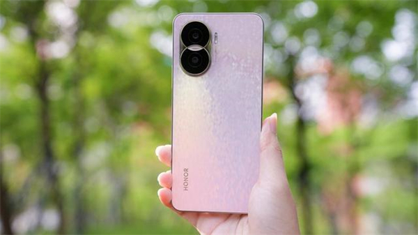 同时在侧面的中框部分,荣耀X40i玫瑰星河的中框采用了闪光砂工艺,能带来金属般的光泽质感。