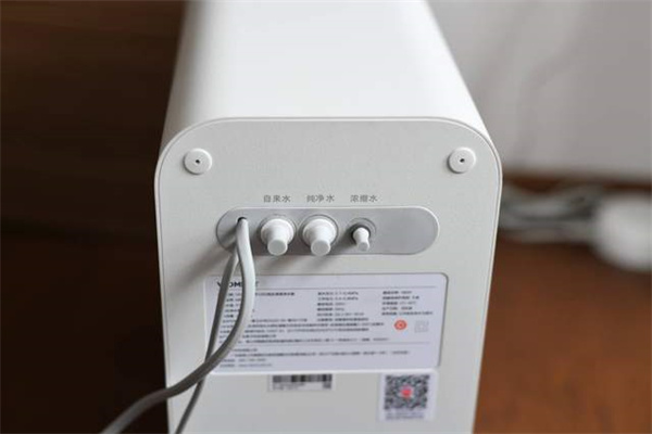 背部面板也是比较简洁,提供了自来水、纯净水以及浓缩水接口,然后就是电源线,没有其他杂七杂八的设计,安装也是相当简单。