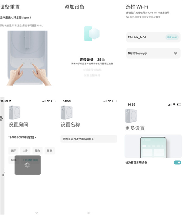 用户可以选择“米家APP”或者“云米APP”作为云米super S的互联网接口,由于我平时使用米家APP比较多,所以目前接入了米家APP作为网络断接口,接入的过程还是非常顺利,按照操作指引一次性就完成配网,然后就可以在APP端查看净水器使用情况了。