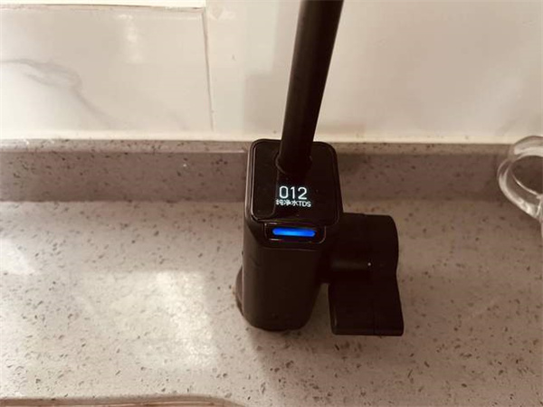 在水龙头的下方这里有个显示水质TDS数据的小小显示屏,可是实时显示水质情况,这一点还是不错的,还有个长条的指示灯。
