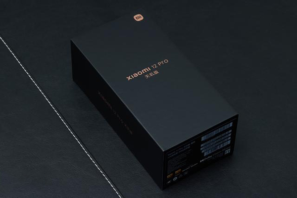 首先,在包装方面小米 12 Pro 天玑版采用了黑色盒子 + 烫金字体,正面右上角印着小米的 Logo。