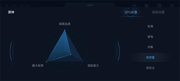 需要注意的是,小米 12 Pro 天玑版要想获得原神 720P 的最大分辨率,需要先进入自带的游戏空间 App,选择原神并在下面的 GPU 设置档中选择高质量,然后进入游戏才行。