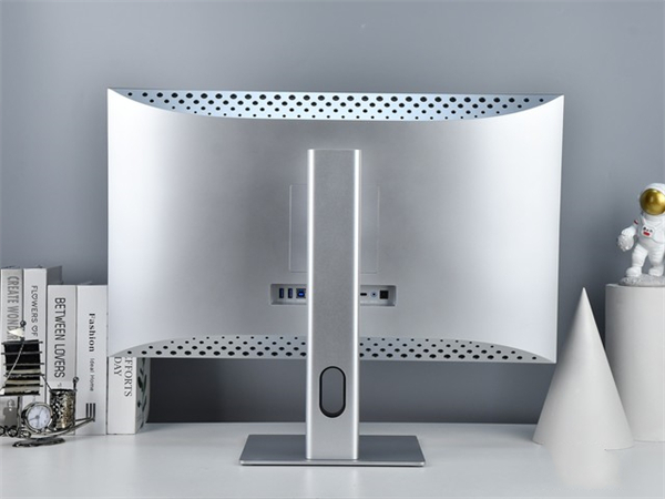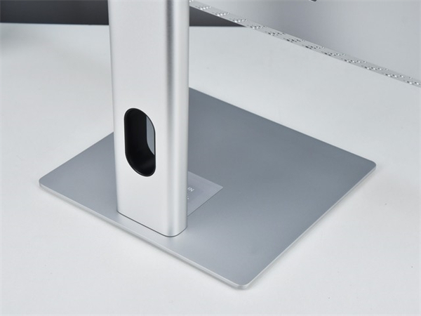 支架和底座都采用了金属材质,银色涂装搭配磨砂工艺带来不错的质感表现。整个支架部分除了理线槽外,再没有额外的设计元素,将极简设计理念贯彻的十分彻底。