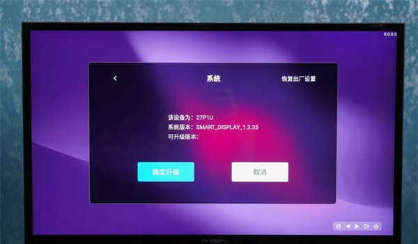 与传统显示器不同的是,这款显示器在不接主机的情况下,会默认显示系统界面。没错,这款显示器内置了一套清爽的桌面系统,并且还支持WiFi和蓝牙连接。在连接上无线网络后,马上就收到了全新的系统版本推送。