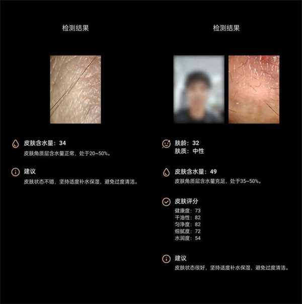 新增的显微镜镜头也带来了一些有趣的新玩法,支持20倍放大,通过2X数码变焦最高支持40倍放大,同时支持色彩滤镜,还可以检测皮肤水分和面部肤质状况,一不小心又省下了一笔皮肤检测仪的钱。