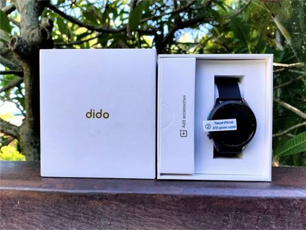 这款手表共硅胶黑色、硅胶蓝色、皮棕色、皮黑色款腕带配色,我选择了比较传统的黑色,dido E10智能心电血压手表外包装非常简洁,正面仅有dido的品牌LOGO,背面有手表型号、生产日期及制造商信息。