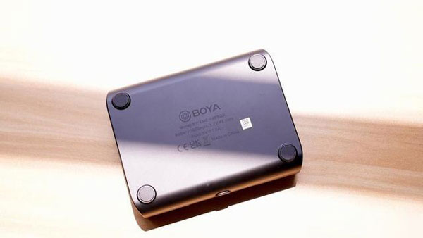 博雅BY-XM6-S6发射端表面采用收边的镜面处理,在出镜的佩戴中并不会影响画面观感,延续了BOYA博雅麦克风低调沉稳的黑底配色,搭配蓝灰的字体也显得格外经典。