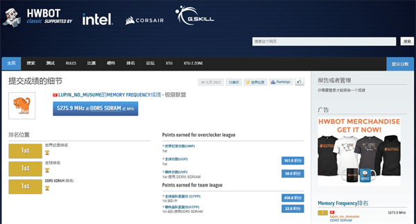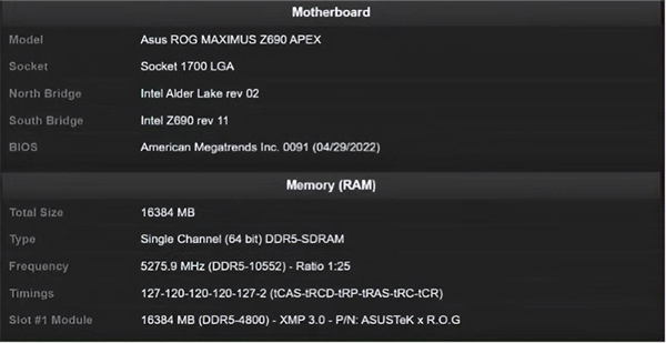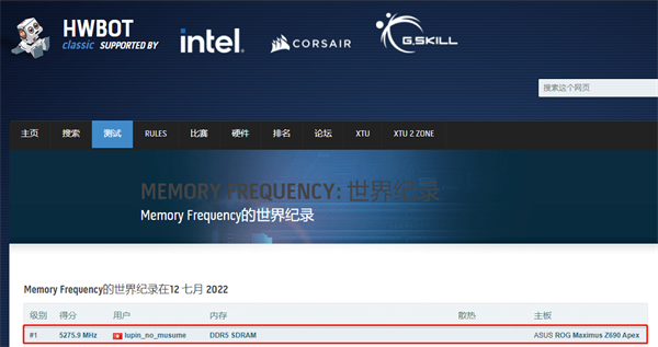 本次除了华硕ROG MAXIMUS Z690 APEX主板外,还使用英特尔酷睿i9-12900K处理器,经过精心调校,最终实现了10552MT/s的DDR5内存频率,位居HWBOT内存超频纪录榜首位。