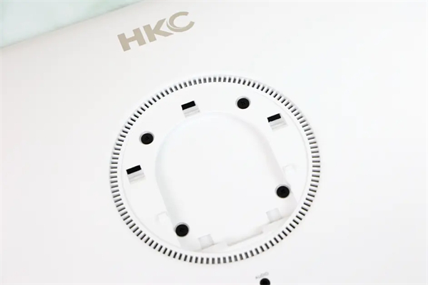 ▲中央圆形安装孔上方是HKC的品牌LOGO,中间位置预留了75mm*75mm的VESA标准孔距支持第三方挂架。