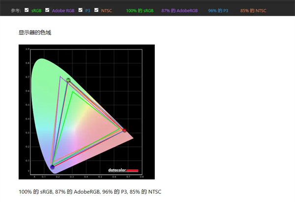 在默认模式下,TG271Q即能达到最高色域覆盖,实测数值为100%sRGB+87%AdobeRGB+96% DCI-P3色域覆盖,快要看齐Nano IPS的水平,成绩十分出色。但高色域带来的过饱和问题,TG271Q没有给出解决方案,它的OSD里只提供了一个没卵用的DCI-P3模式选项(此时P3覆盖降到93%),却没有提供关键的sRGB色域缩限和切换。