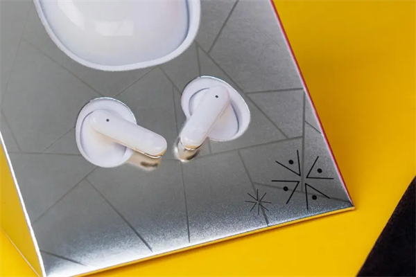 雪豆Snowpea在内里采用了坡度结构,银色的斜坡上耳机镶嵌在内,仿佛陷入了雪地之中,有点犹抱琵琶半遮面的感觉,这种设计是耳机行业从未有人使用过的。在斜坡上雪豆Snowpea采用了光敏油墨和紫外线固化工艺,整个产品浑然一体,十分有质感。