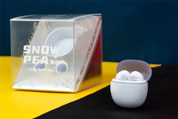 TWS耳机自诞生以来,主打的就是便携短小,毕竟取消有线的目的就是为了方便,所以各大厂商无不尽力凸显这个品质,在外包装上也都是能省则省,毕竟这么个小玩意,整的像八月十五的礼盒月饼——盒大个数少就没什么意思了。但雪豆 Snowpea的设计反其道而行之,虽然并未对外包装做什么长又大的处理,但仅从外部设计就能让人感受到产品的诚意。