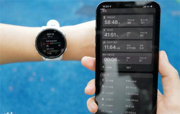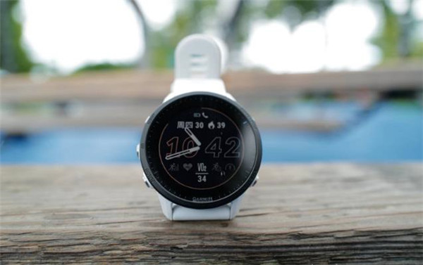 右侧上方功能键上少了 Garmin 的 logo 标志,但右侧下方的返回键却多了一个计圈数的标志,上滑或下滑屏幕,可以看到一些初始配置的信息,睡眠状态、训练状态、天气、活动等,而通过 Garmin Connect App 则可以更深入地了解丰富的身体指标和运动监测数据。尽管它的本地化仍然做的不尽人意,体现在 UI 界面上还有待优化,但对很多 Garmin 的资深用户来说,这或许也代表了它的专业性。