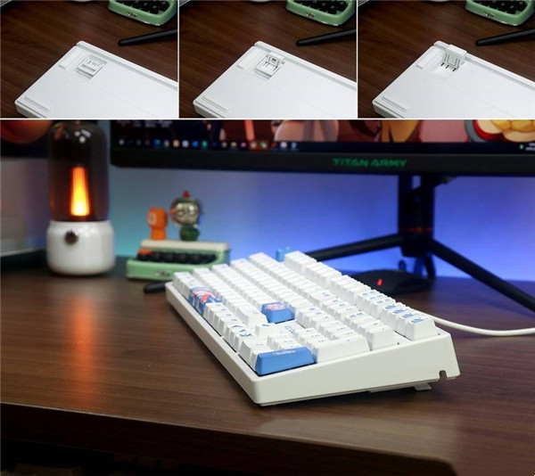 键帽与键轴PBT键帽的做工非常到位,正面色彩鲜艳,耐磨不打油是其余,涂装色彩鲜艳,不掉色不会随着时间黯淡,键帽背面忘记拍了,无毛边很规整,做工这块儿,ikbc的确执行了“航天标准”,不含糊,有质量。