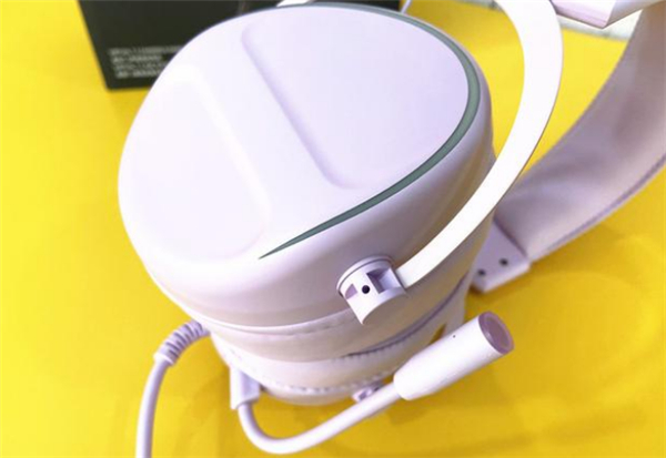 右耳罩正面上面一圈为炫酷的RGB灯,耳罩表面材质也有了改进,采用了磨砂类肤质一样的材质,细腻温润,不容易留有指纹。