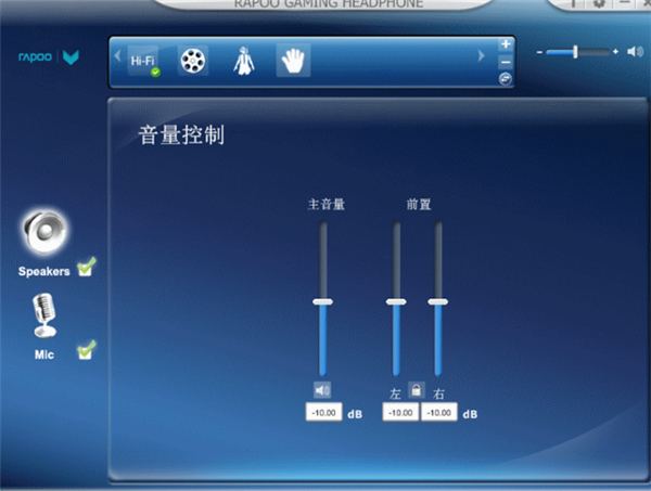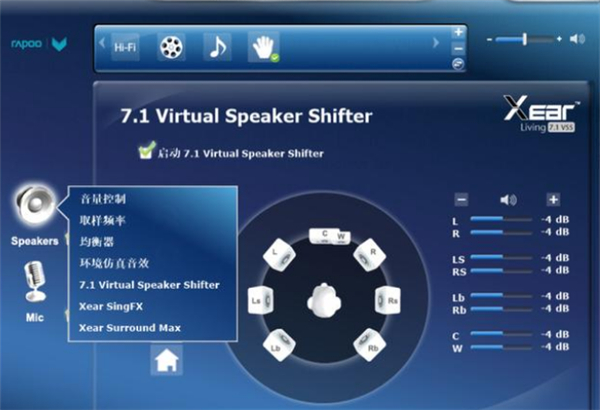 首次使用,我们需要先到雷柏的官网下载雷柏游戏耳机的驱动,通过驱动程序可以对耳机功能进行设定,各种场景模式的选择,麦克风,虚拟7.1声道的设定。
