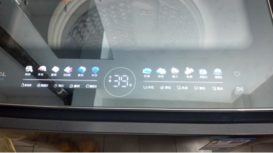 我们可以看到洗衣机在未选择智能洗程序时的洗涤时长默认设置为51分钟,在投放衣物并选择智能洗程序时,可以看到洗涤时长变为39分钟,洗涤液及柔顺剂混合智控水量均衡投放,后面再也无需我们进行任何按键操作,等待洗涤程序结束取出衣物即可,过程十分方便。