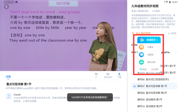 因为疫情的关系,现在不少学校都实行的是在家上网课的形式,针对这一情况,科大讯飞AI学习机T10在系统升级后就非常贴心的加入了“网课助手”功能。在使用科大讯飞AI学习机上网课时开启网课模式后,系统不仅可以过滤消息提醒、优化网络系统,让网课体验不打扰、不卡顿,同时遇到重点和难点随时记录,视频自动转写文字笔记。网课后,还可通过做少量题目,诊断这节课的薄弱知识点。