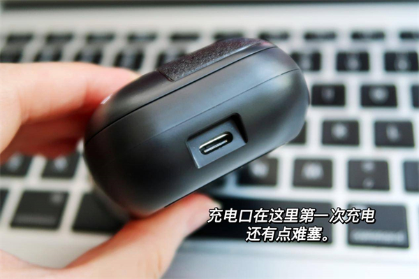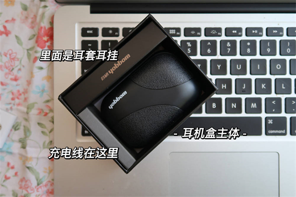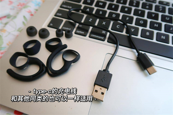 首先开箱看看里面的样子吧,耳机的主体旁边的是充电线type-c接口的,里面还有他们家独特的不同的耳机套。
