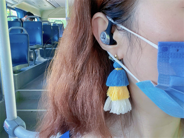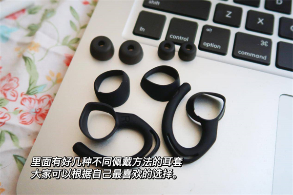 哦,对了,我再说一个自己最喜欢的点,就是他配备了不同的使用方法,有不同大小的耳圈儿,耳圈设计就是像两个小豆豆一样,直接放在耳朵里。我个人是非常喜欢二耳圈儿的佩戴方法,时尚又轻便,跑跳也不会掉,而且耳朵非常的舒适没有挂在耳朵上的压迫感也比较方便戴口罩啊,戴帽子。当然不习惯的,还有大小不同的耳挂可以根据你的舒适度来挂在耳朵上。