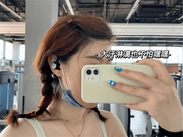 本来我以为挂耳式的会不太舒服,但是戴起来会发现他运动气力啊非常的稳固,像剧烈运动大汗淋漓也不会让音乐有影响,I P X五级防水的材质不管你是去做高强度的有氧课程、高强度hiit的 间歇,或者是户外的爬山,跑步都是不怕流汗的这 点,我超级喜欢。