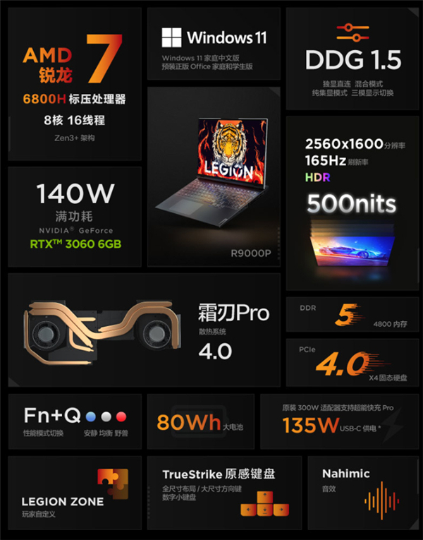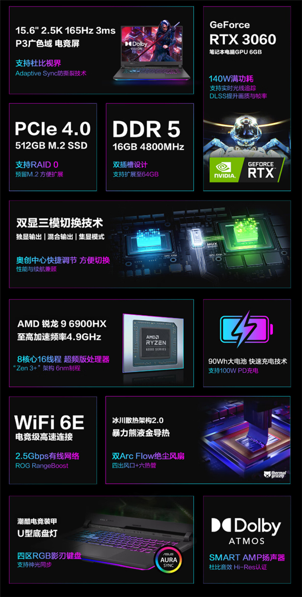 锐龙9 6900HX、RTX 3060、16GB、512GB、2.5K/165Hz
