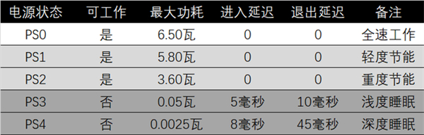 我们的台式机测试平台不支持S0ix现代待机,在空闲超时200毫秒、延迟容忍限制15毫秒的设定下,致态TiPlus5000可以在空闲时进入PS3电源状态。测试中还同时开启了ASPM节能。