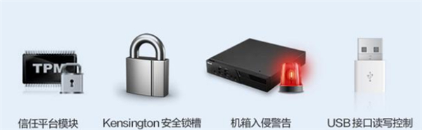 机身背面还设置了一个Kensington防盗锁孔,实际上,在安全方面,华硕PB62不仅仅是提供了一个锁孔那么简单。它还具备了机箱入侵警告,在机箱在上次开机后被开启,它会发出警示。另外,对于USB接口的读写,也提供了相应的控制功能,以确保更加安全的使用体验。