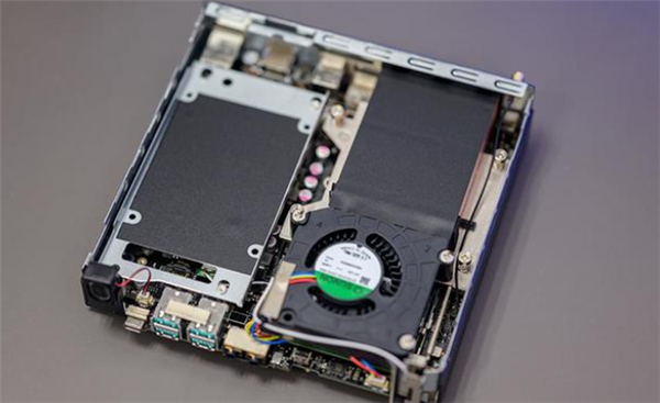 我们再来看看它的内部,拆解过程也是相当简单,在拧掉背部的一个螺丝后,就可以将上盖打开。打开后,机身左侧是一个2.5英寸硬盘位,右侧则是散热结构。
