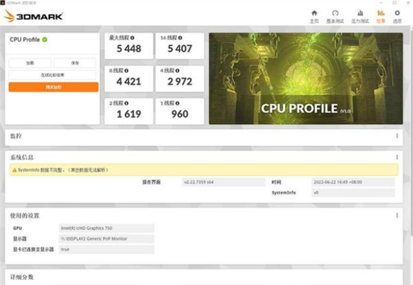 使用3DMARK CPU PROFILE测试,得分如上,不同线程的成绩也是其应有的表现。
