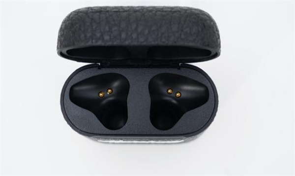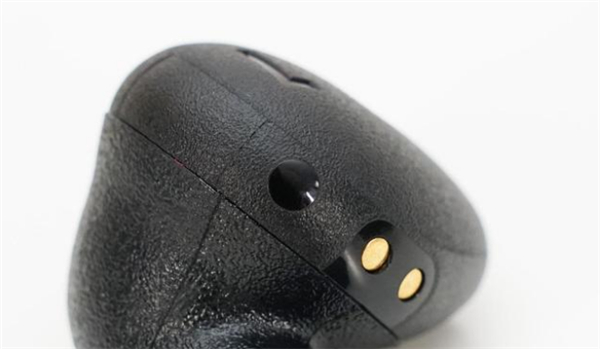 在耳机头的下方隐藏了耳机的金属充电触点,这样的设计有助于保持耳机整体外观的统一性。