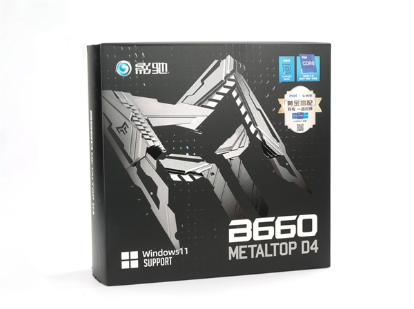 右上角的Intel蓝色标志,表明影驰 B660金属大师主板支持intel 12代CPU。