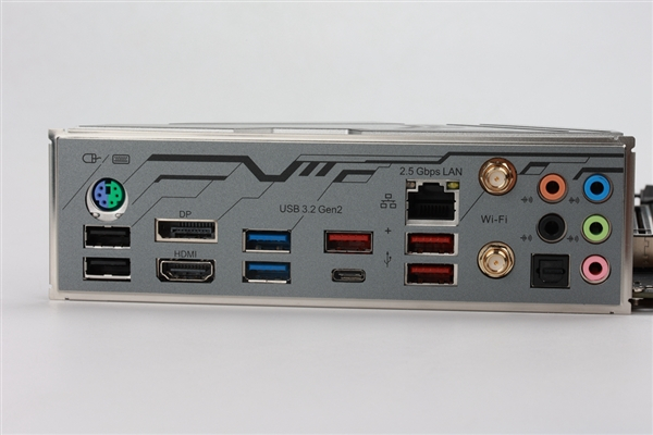 影驰 B660 金属大师配备的IO接口非常丰富——PS/2接口、4个USB 3.2 Gen1、2个USB 3.2 Gen2、DP接口、HDMI接口、2.5Gbps网络接口、7.1声道音频接口。