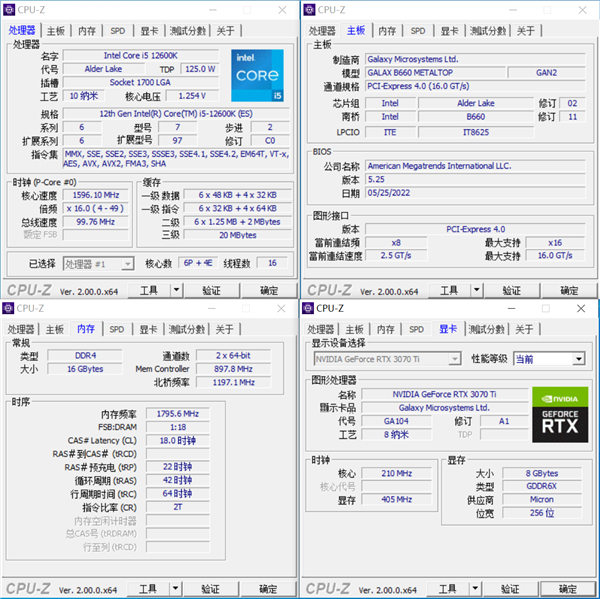 为了有效地测试影驰 B660 金属大师主板的性能实力,CPU上选用了intel i5-12600K,显卡则选用了影驰 RTX 3070Ti HOF PRO,内存则选用了两根DDR4 8G*2的星曜内存。
