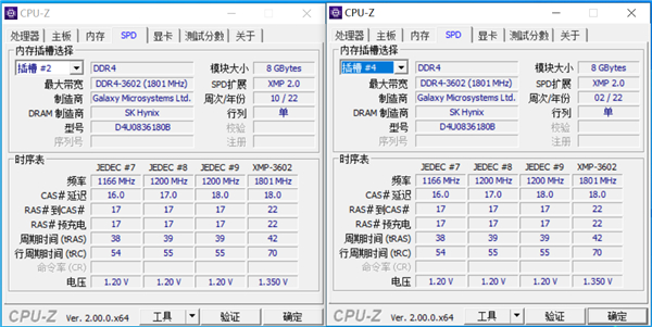 内存支持上,星曜 DDR4-3600 8G*2内存开启XMP也没有什么问题,频率达到3600MHz,时序稳定在CL18-22-22-42。