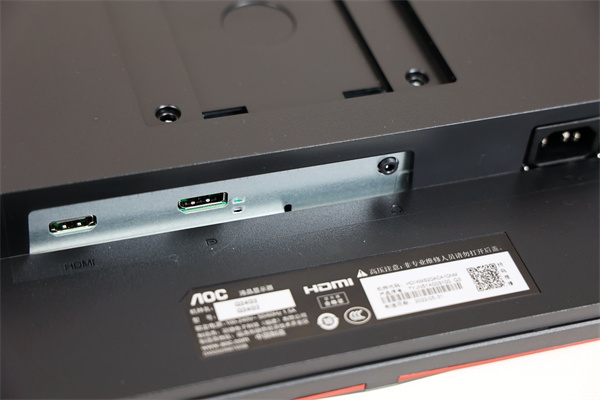 ▲机身的IO接口部分称得上是寒酸,视频信号就只有一个HDMI 2.0接口+DP 1.2接口+3.5mm音频口,别的啥都没有了,实在有点丐。唯一的亮点是内置电源,直接采用电饭锅三口线比较方便。