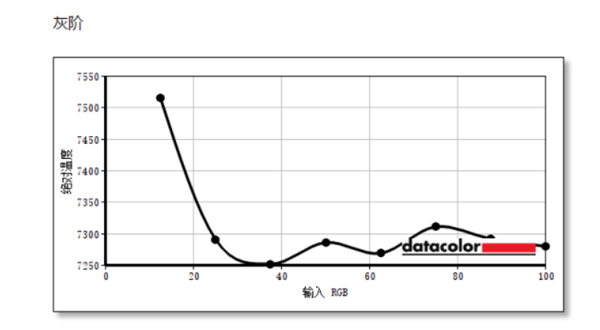 经实测伽马值为标准的2.2,色调响应曲线调校的也非常精准,从头到尾和标准曲线完全贴合,没毛病。
