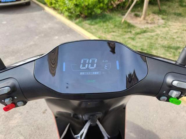 车把中间为液晶显示屏仪表盘,数字清楚,夜间也不会晃眼。中间最大的数字显示时速,下方有电量条和电量百分比,所有骑行参数都一目了然。