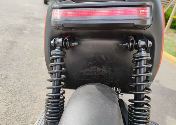 它的前侧保留了一个挂纽,平时挂个包包或购物袋完全没问题。F90的后侧是配备有高亮红色刹车灯,夜间的穿透力非常好。