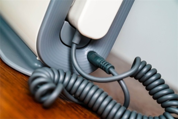 它是有线的。净化仓用伸缩性较强的弹簧线连接,最长能拉伸1.8米,使用时需要考虑下厨房的电源问题了。虽不如无线款自由、便捷,但好在功率输出更加稳定,像洗碗机、微波炉这类家电都是选择有线插电来保障持续作业效果的。而且无线款需要反复充电,电池寿命短,充电时间长了,也会存在充不进电的问题。