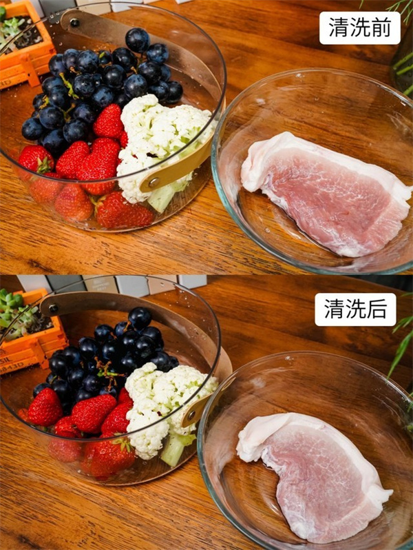 那么,摩飞食材净化机MR2061对于肉类的净化效果如何,双仓同步清洗表现是否如初?