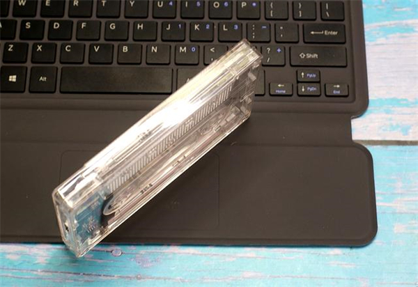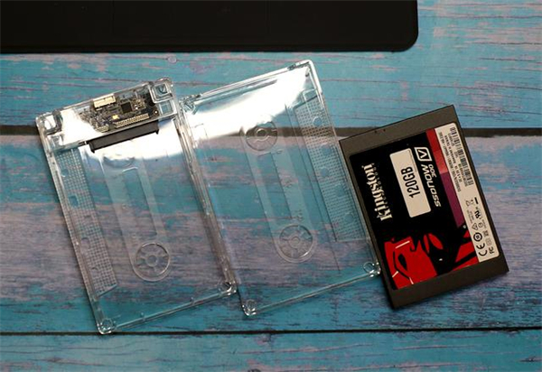 放入我的2.5英寸SSD设备,然后完成装配,全透明设计可以把内里一览无余,内部稳定可靠,没有松动与异响。